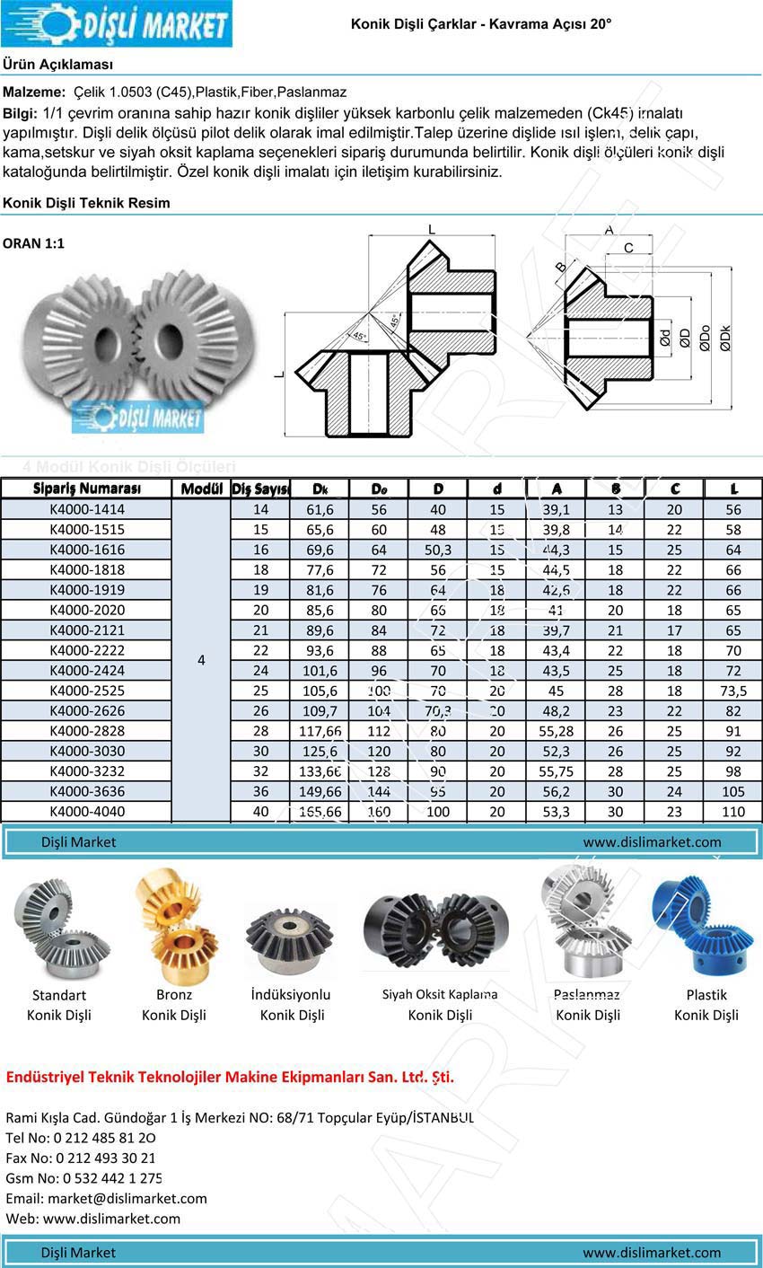 4 Modül 16 Diş Konik Dişli Ölçüleri